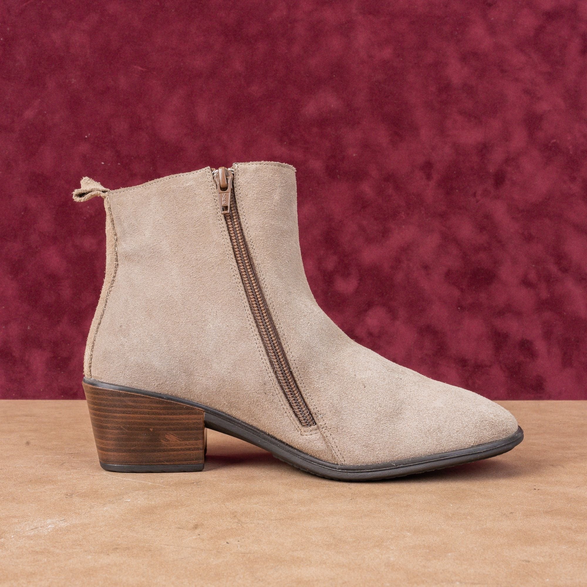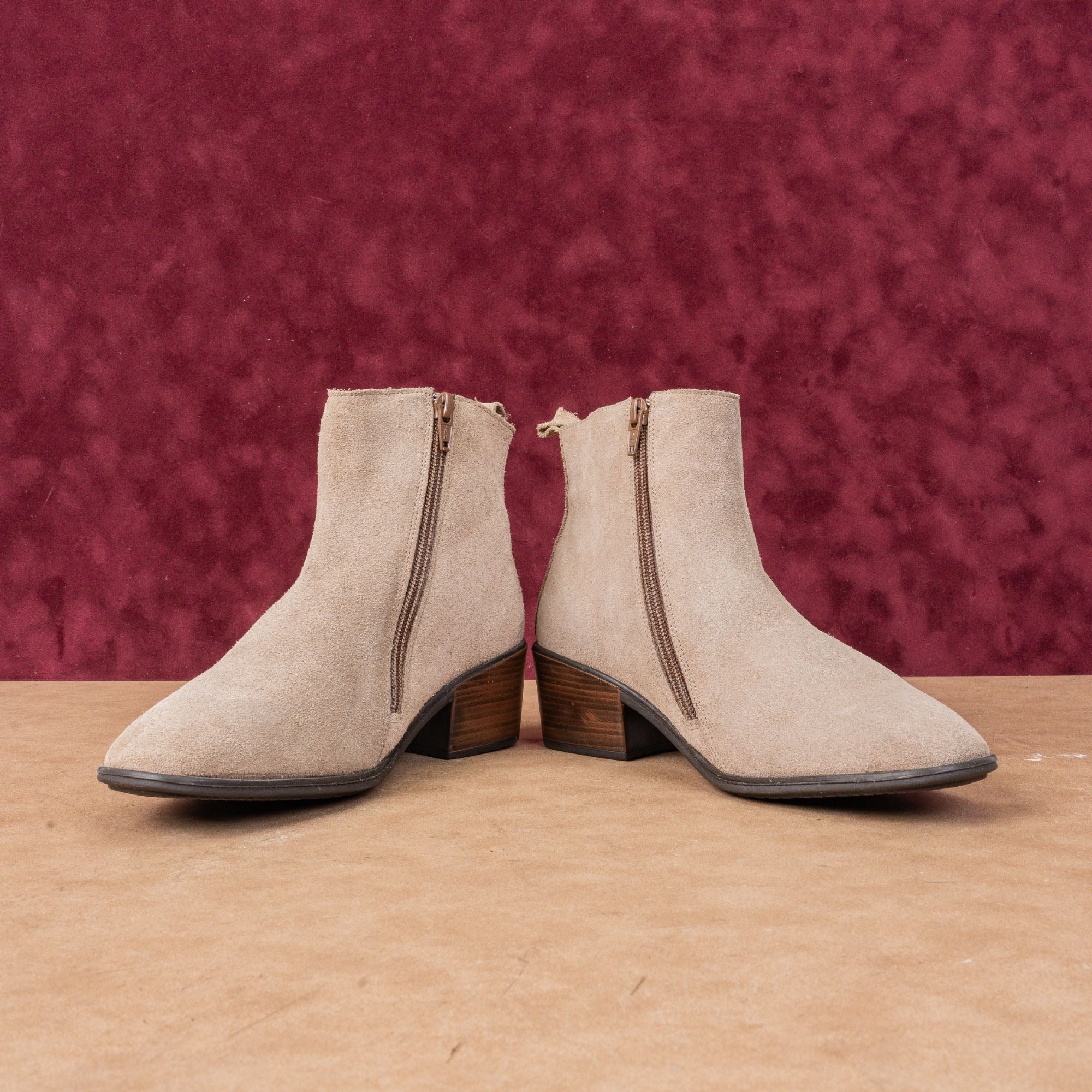 Naot Women Ethic Taupe Suede Zip Fashion Heeled Ankle Boots 7US EUR 38