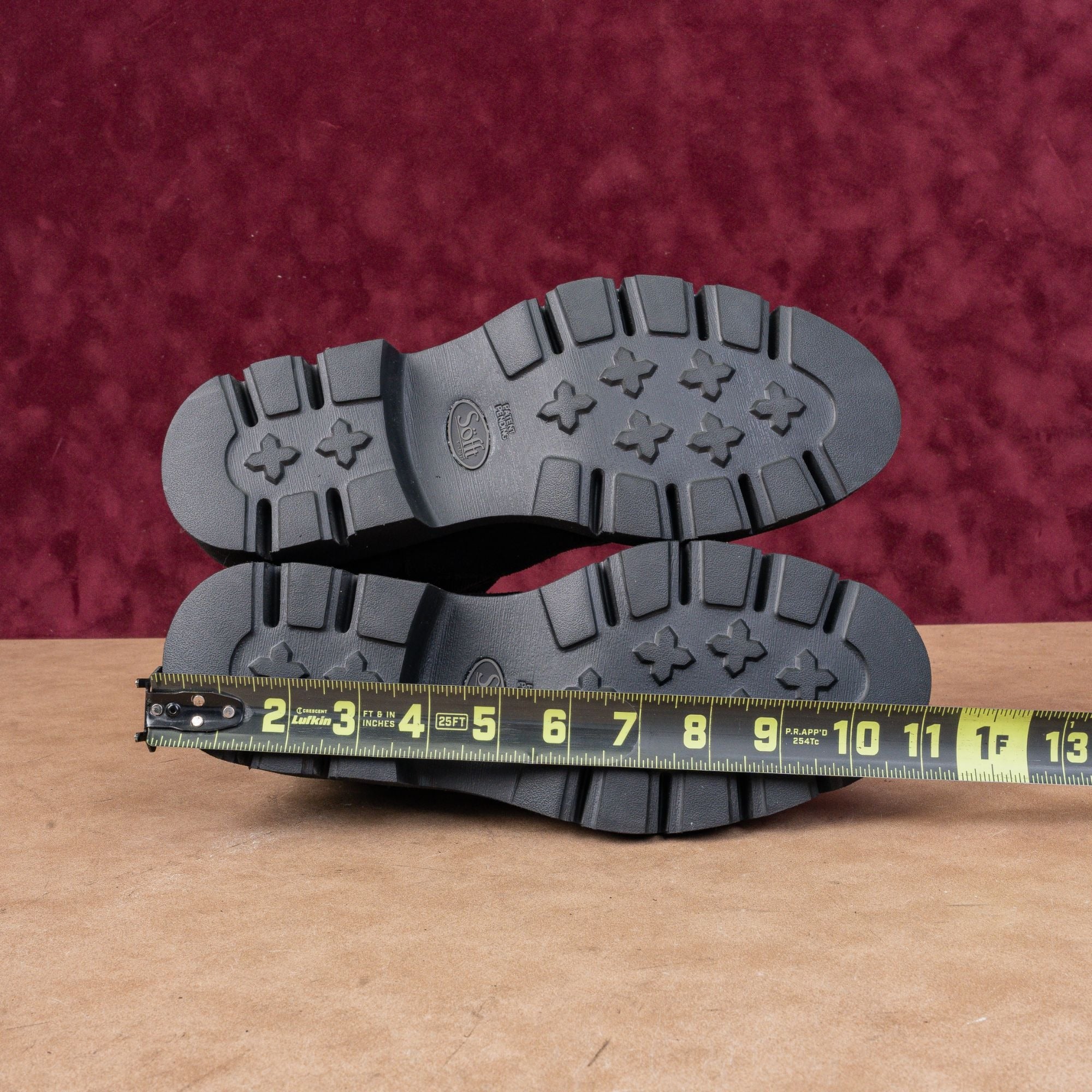 New Condition with tags. No signs of wear on the soles. Model# Samira. Waterproof. Retail $179. Leather Upper, Leather Lining, Rubber soles. Made in Cambodia. Side zipper style for easy on and off. Almond toe. SKU 11515