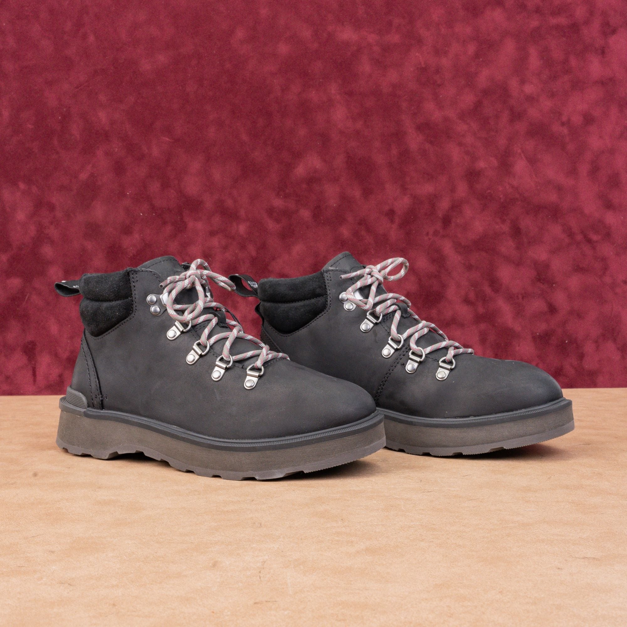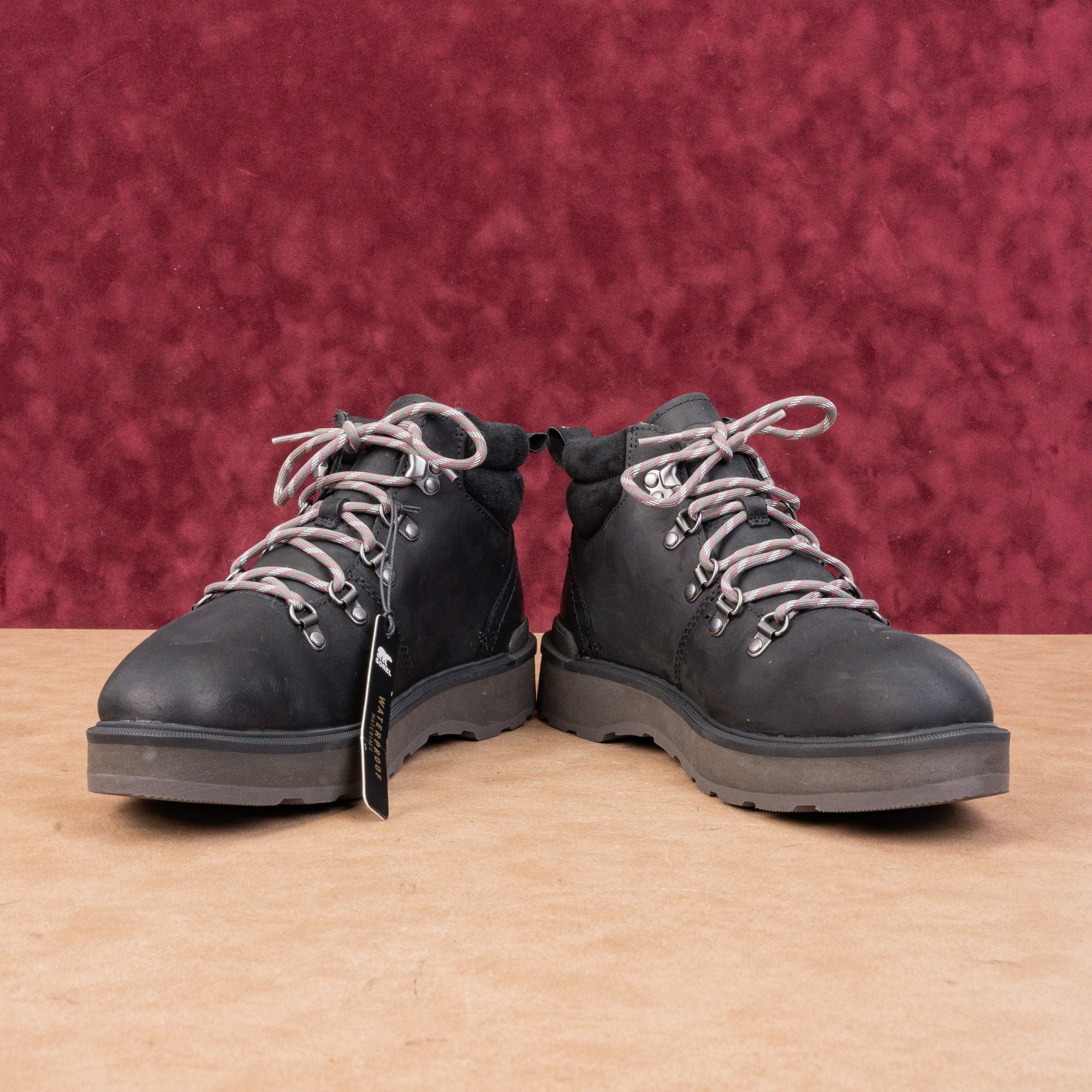 Crafted from sleek black leather, this fashionable hiker features a bold chunky platform sole and a lace-up front. The perfect blend of urban utility and modern style.