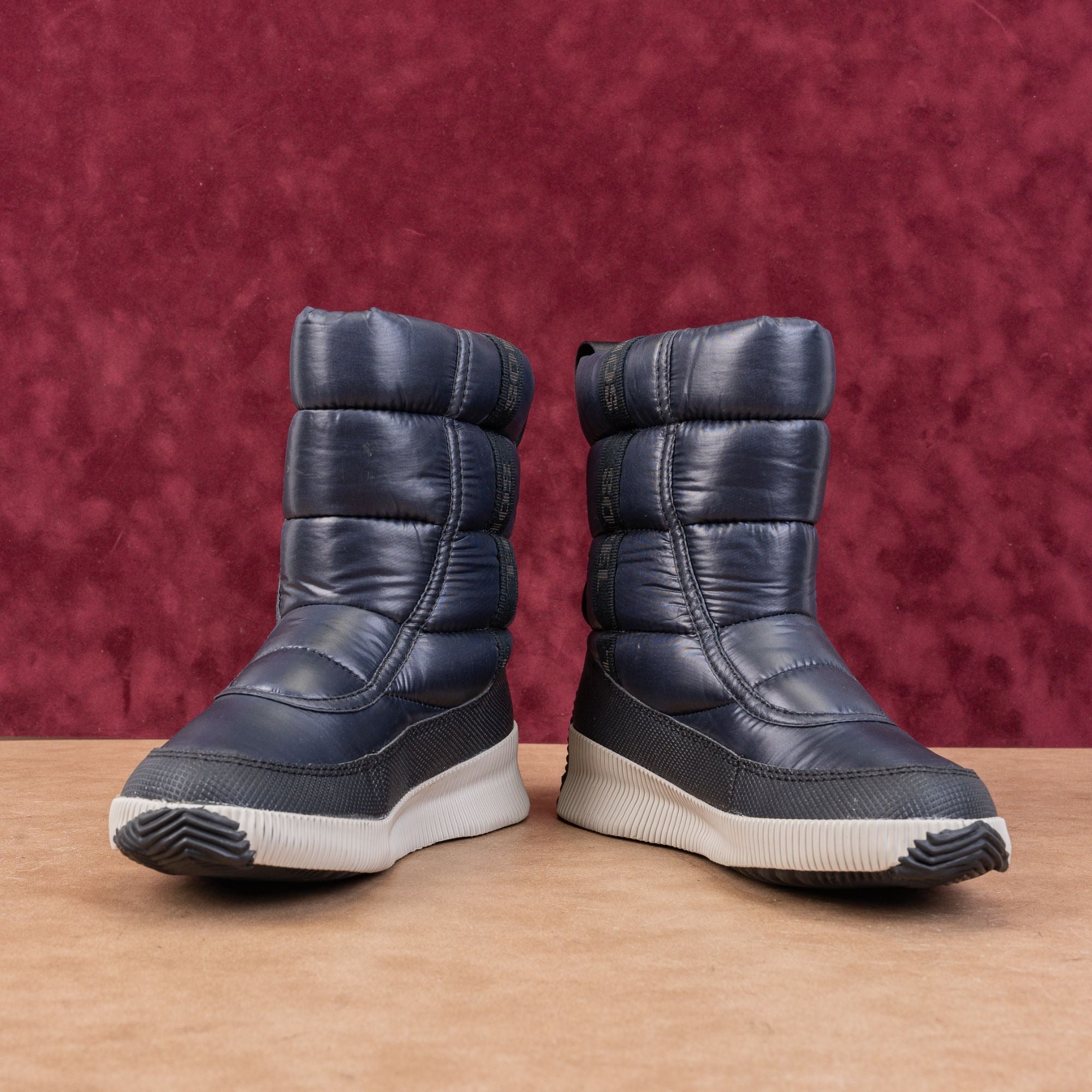 Sorel Women Out N About Puffy Slip Waterproof Blue Grey Ankle Boots Sz 6.5