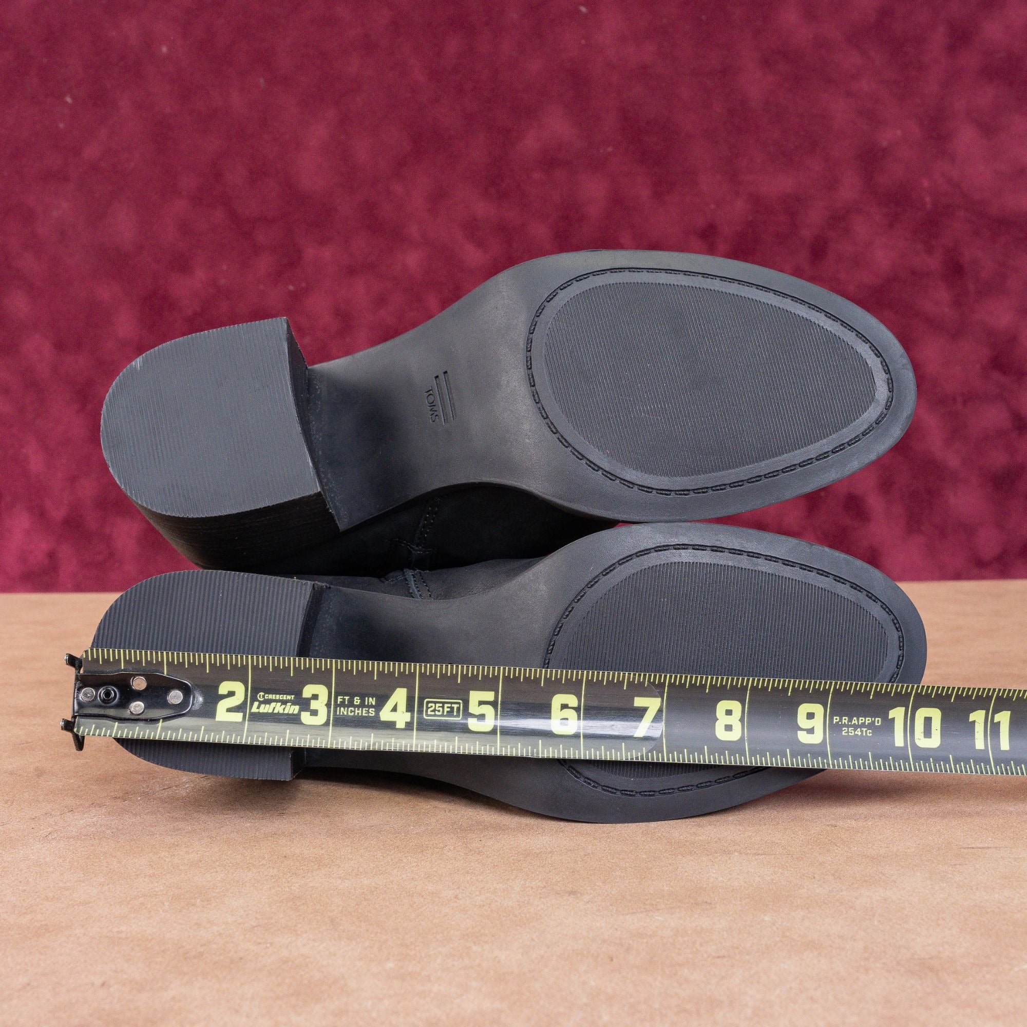TOMS Women Evelyn Black Leather Heeled Zip Ankle Boots sz 9.5
