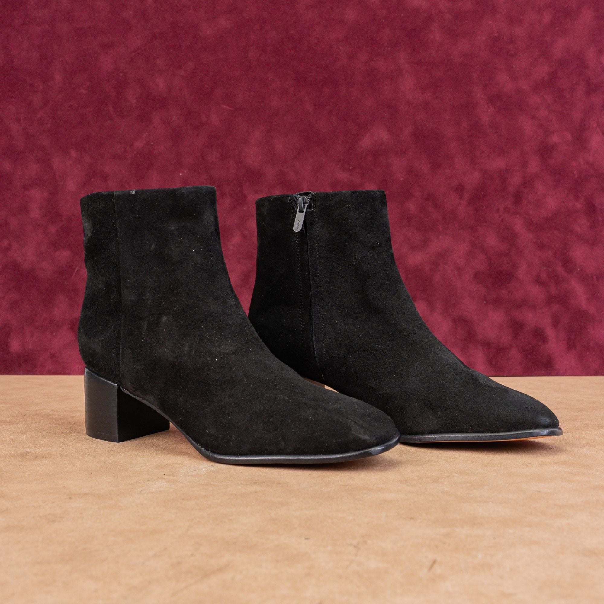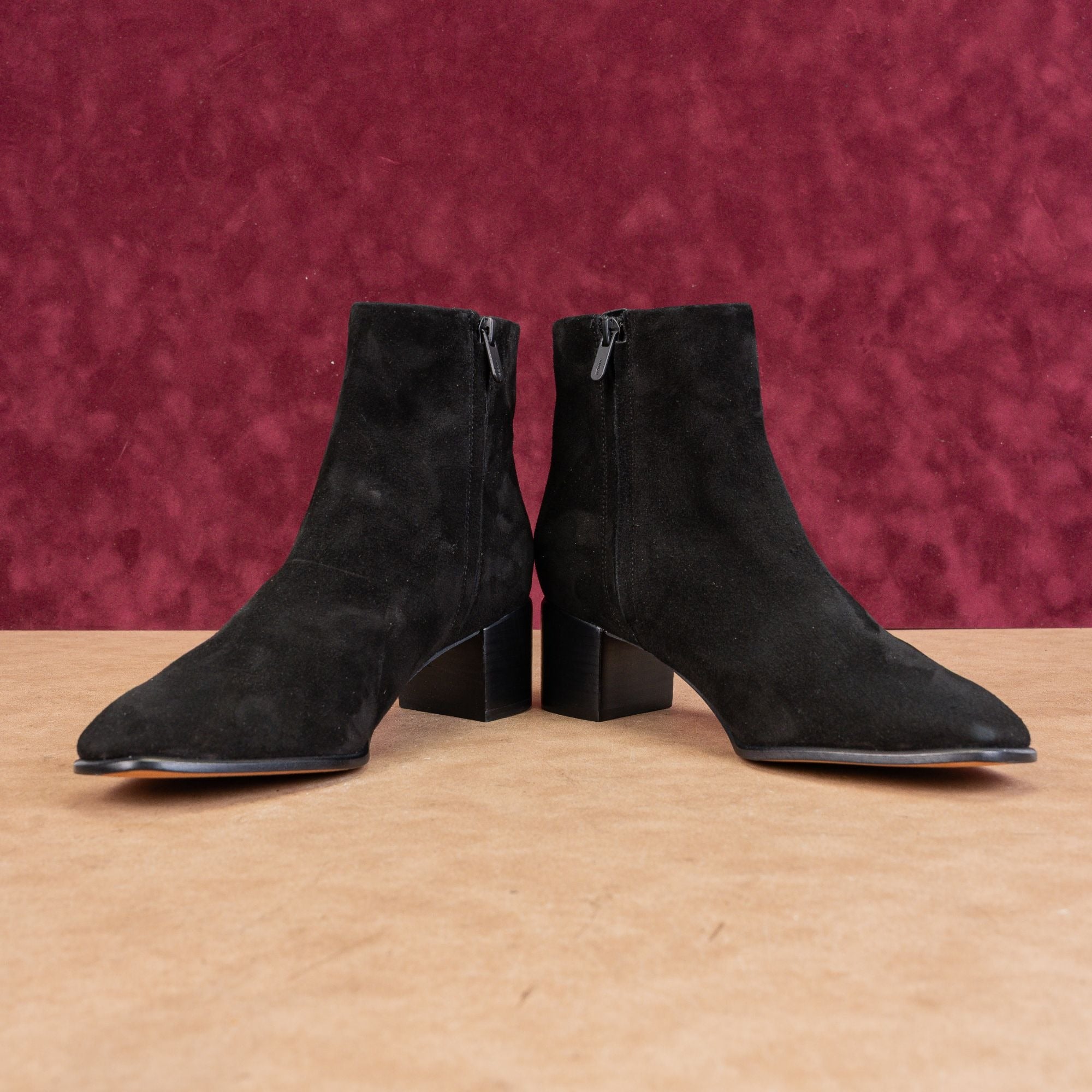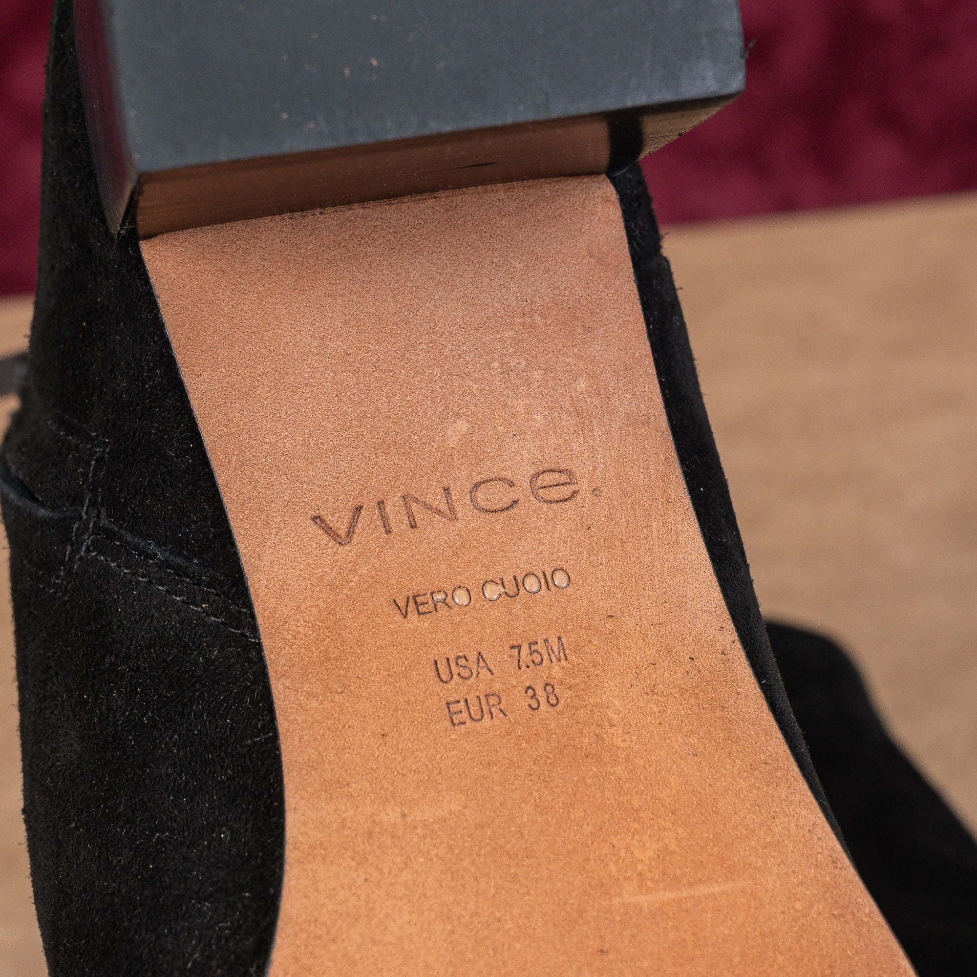 Vince Women Ara Black Suede Block Heel Zip Dress Fashion Boots sz 7.5US EUR38