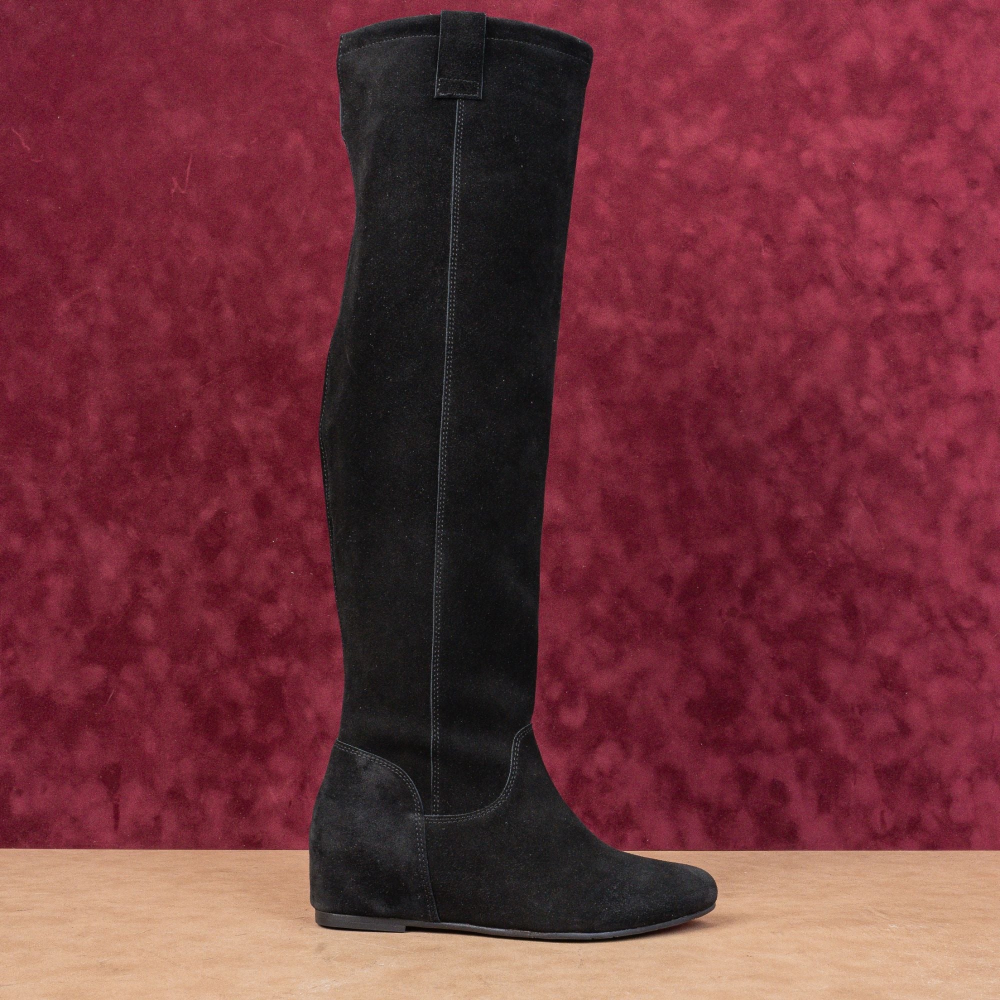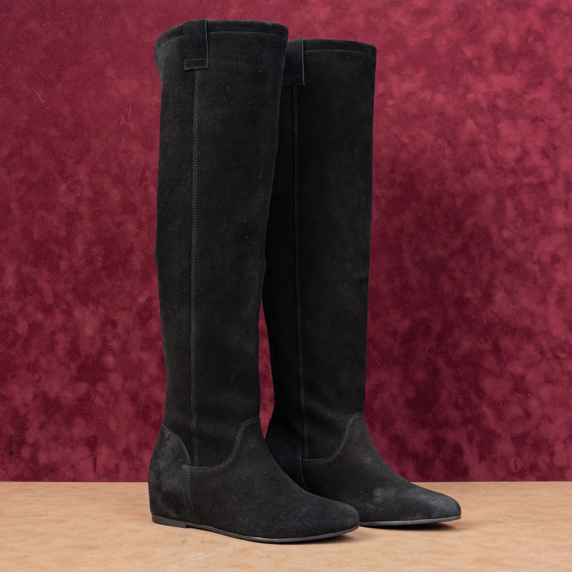 ZIGIny Women Black Suede Riding Slip-on Wedge Heel OTK Fashion Boots sz 7